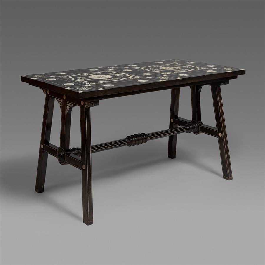A Neo-Renaissance Style Inlaid Indian Ebony Library Table
