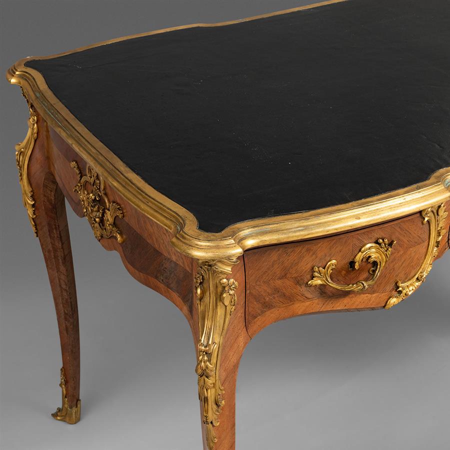 A Louis XV Style Gilt Bronze Mounted Kingwood Parquetry Bureau Plat