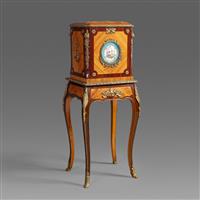 (Sèvres,Established 1740)塞弗尔国家瓷厂(Manufacture Nationale de Sèvres, Established 1740)法国重要瓷器工厂,与德国梅森(Meissen, Established 1710)共为欧洲瓷器标准的制定者。1740年,让-路易-亨利·奥里·德·菲尔维(Jean-Louis Henri Orry de Fulvy, 1703-1751)在路易十五(Louis XV, 1710-1774)和蓬巴杜夫人(Madame de Pompadour, 1721-1764)支持下,始建于巴黎东部废弃的皇家城堡万森纳(Château de Vincennes),以形成对德国梅森和法国尚蒂伊(Chantilly, 1730-1800)瓷器的竞争。1748年,雕刻家兼金匠大师让-克劳德-尚贝朗·迪普莱西(Jean-Claude Chambellan Duplessis, 1699 -1774)受聘出任瓷厂艺术总监;1752年,与德国彩瓷相别的素瓷作品推出,没有彩釉,没有装饰,更类似大理石的冷静。1756年,为响应越来越多的重要订单,在蓬巴杜夫人的倡议下,工厂搬迁至贝尔维城堡(Château de Bellevue)附近,建筑师洛朗·兰代(Laurent Lindet, 1711-1769)设计建造的塞弗尔新址。1757至1766年间,雕塑家艾蒂安-莫里斯·法尔科内(Étienne-Maurice Falconet, 1716-1791)担任瓷厂雕塑总监期间,以一系列古典优雅的作品为塞弗尔素瓷带来了巨大的成功。1759年,路易十五购入工厂归于皇室产业之下,在王室的特别眷顾下,塞弗尔以优异的材质、高超的技艺以及高雅的艺术品位始终保持着最高质量标准;不像其他欧洲瓷厂以模仿东方瓷器为始,塞弗尔自始就采用法国王室所钟情的洛可可华丽风格,塞弗尔钴蓝釉和鎏金工艺更是引领了整个欧洲大陆的风潮。迪普莱西、法尔科内、宫廷画家弗朗索瓦·布歇(François Boucher, 1703-1770)和金匠大师乔凡尼-克劳迪奥·乔贝拉诺(Giovanni-Claudio Ciambellano, 1699-1774)等杰出艺术家为瓷厂创作了众多早期经典设计。