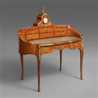 (Maison Millet,1853-1918)米莱公司(Maison Millet, 1853-1918)19世纪下半叶巴黎重要艺术家具制造商之一,细木工布莱斯·米莱(Blaise Millet, 1829-1906)1853年创立于巴黎雅克-科尔街(Rue Jacques-Coeur)11号,以高品质的路易式细工镶嵌和漆画家具,以及精美的鎏金青铜饰件而广受称赞。1890年代,公司在布莱斯之子西奥多·米莱(Théodore Millet, 1853-1904)带领下逐步发展壮大,成为当时重要的制造商之一,被舆论评论为古典和现代艺术家具界的翘楚;作为19世纪重要的国际展览参展商之一,公司曾获得众多重要展览荣誉和奖章,1889年首次参加巴黎世博会便斩获大会金牌,更在1900年巴黎世博会获得三项荣誉奖、四枚金牌,以及博览会大奖。1902年3月,公司获得凡尔赛授权,复制了18世纪大师让-费迪南德-约瑟夫·施威弗格(Jean-Ferdinand-Joseph Schwerdfeger, 1734-1818)于1787年为玛丽·安托瓦内特(Marie Antoinette, 1755-1793)制作的大型婚礼珠宝柜;同年,公司总部搬迁至博马舍大道(Boulevard Beaumarchais)23号芒萨尔·德萨贡公馆(Hôtel Mansart de Sagonne);1904年,公司参加美国圣路易斯世博会之后,在纽约曼哈顿第五大道(Fifth Avenue)469号建立北美代表处;1905年,公司在巴黎家具工业沙龙(Salon des Industries du Mobilier)展出了新艺术元素的鎏金青铜中央桌,以现代风格向世界展示了他们作为创作者的才华,奠定了美好年代(Bèlle Époque)风格主要创造者之一的重要地位。1906年,公司因西奥多去世后无人继承而关闭工厂,并举行了库存拍卖,至1918年停止一切商业活动。