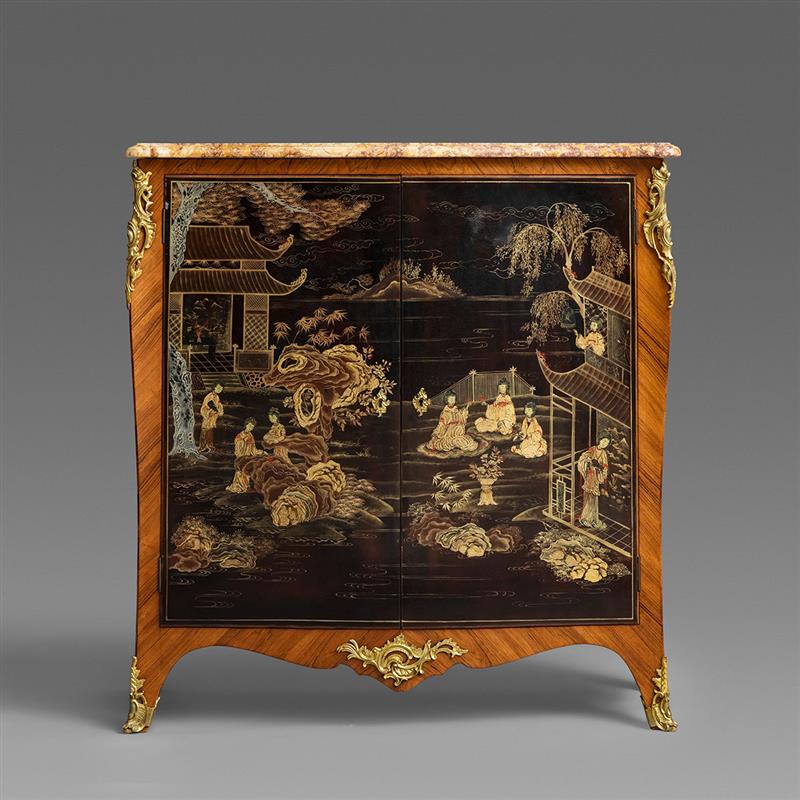 路易十五样式铜鎏金装饰中国漆画郁金香木镶花边柜