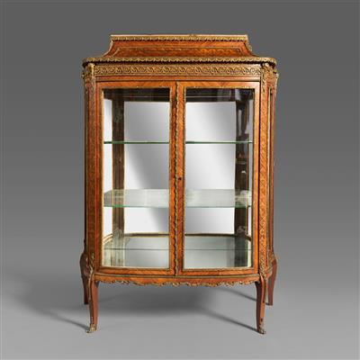 路易十六样式铜鎏金装饰安波拉木和桃花心木展示柜
