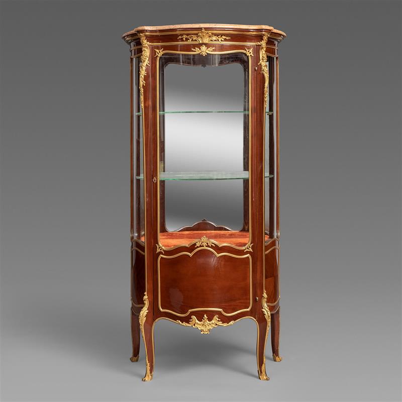 路易十五样式铜鎏金装饰桃花心木展示柜