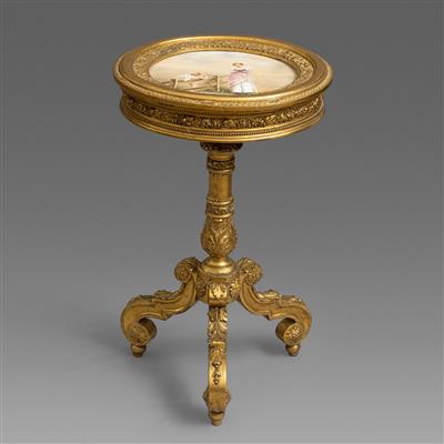 新古典风格维也纳瓷板桌面贴金箔木雕圆几