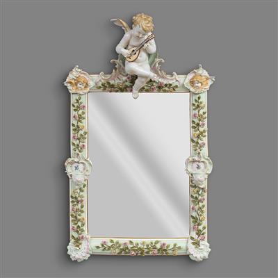 洛可可风格彩绘瓷雕花卉人物挂镜