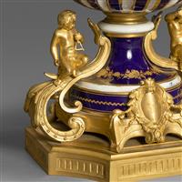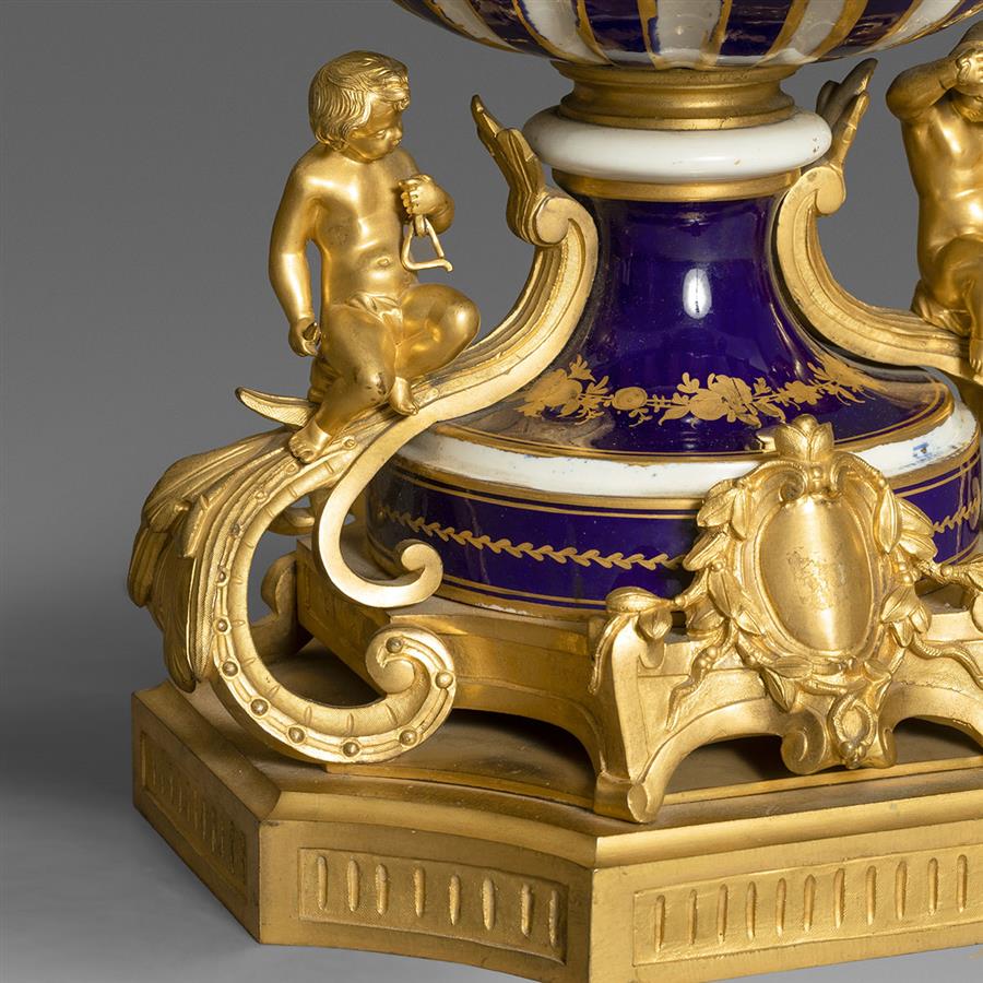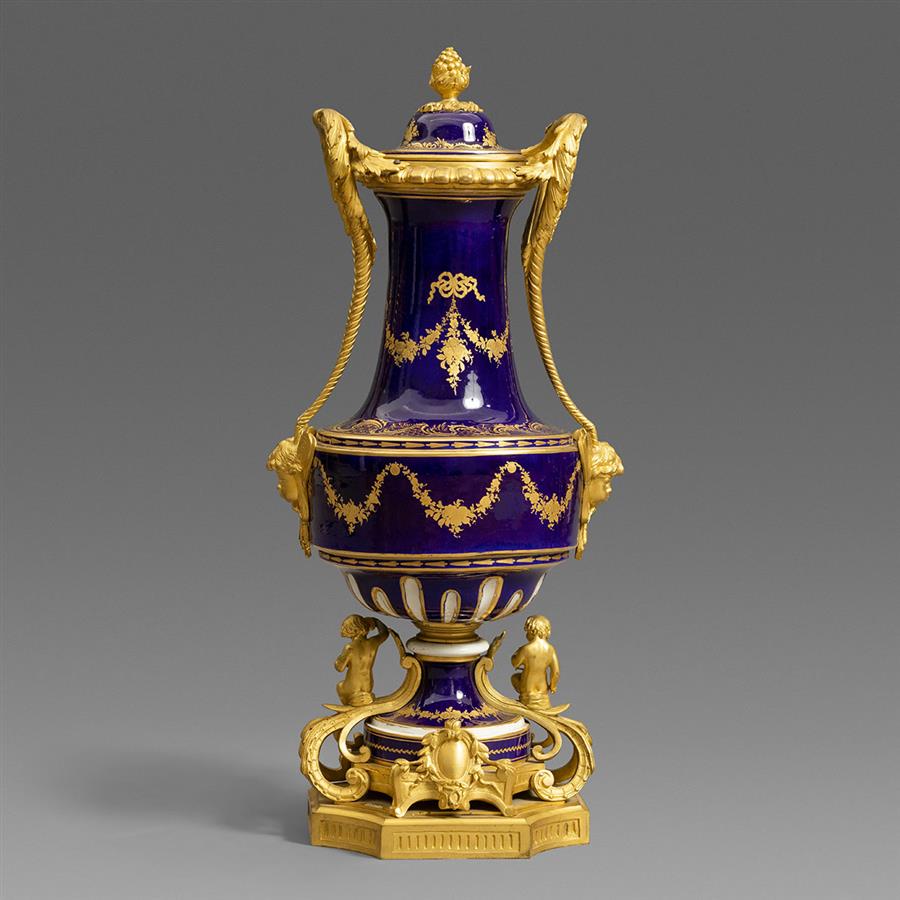 塞弗尔国家瓷厂(Manufacture Nationale de Sèvres, Established 1740)法国重要瓷器工厂,与德国梅森(Meissen, Established 1710)共为欧洲瓷器标准的制定者。1740年,让-路易-亨利·奥里·德·菲尔维(Jean-Louis Henri Orry de Fulvy, 1703-1751)在路易十五(Louis XV, 1710-1774)和蓬巴杜夫人(Madame de Pompadour, 1721-1764)支持下,始建于巴黎东部废弃的皇家城堡万森纳(Château de Vincennes),以形成对德国梅森和法国尚蒂伊(Chantilly, 1730-1800)瓷器的竞争。1748年,雕刻家兼金匠大师让-克劳德-尚贝朗·迪普莱西(Jean-Claude Chambellan Duplessis, 1699 -1774)受聘出任瓷厂艺术总监;1752年,与德国彩瓷相别的素瓷作品推出,没有彩釉,没有装饰,更类似大理石的冷静。1756年,为响应越来越多的重要订单,在蓬巴杜夫人的倡议下,工厂搬迁至贝尔维城堡(Château de Bellevue)附近,建筑师洛朗·兰代(Laurent Lindet, 1711-1769)设计建造的塞弗尔新址。1757至1766年间,雕塑家艾蒂安-莫里斯·法尔科内(Étienne-Maurice Falconet, 1716-1791)担任瓷厂雕塑总监期间,以一系列古典优雅的作品为塞弗尔素瓷带来了巨大的成功。1759年,路易十五购入工厂归于皇室产业之下,在王室的特别眷顾下,塞弗尔以优异的材质、高超的技艺以及高雅的艺术品位始终保持着最高质量标准;不像其他欧洲瓷厂以模仿东方瓷器为始,塞弗尔自始就采用法国王室所钟情的洛可可华丽风格,塞弗尔钴蓝釉和鎏金工艺更是引领了整个欧洲大陆的风潮。迪普莱西、法尔科内、宫廷画家弗朗索瓦·布歇(François Boucher, 1703-1770)和金匠大师乔凡尼-克劳迪奥·乔贝拉诺(Giovanni-Claudio Ciambellano, 1699-1774)等杰出艺术家为瓷厂创作了众多早期经典设计。