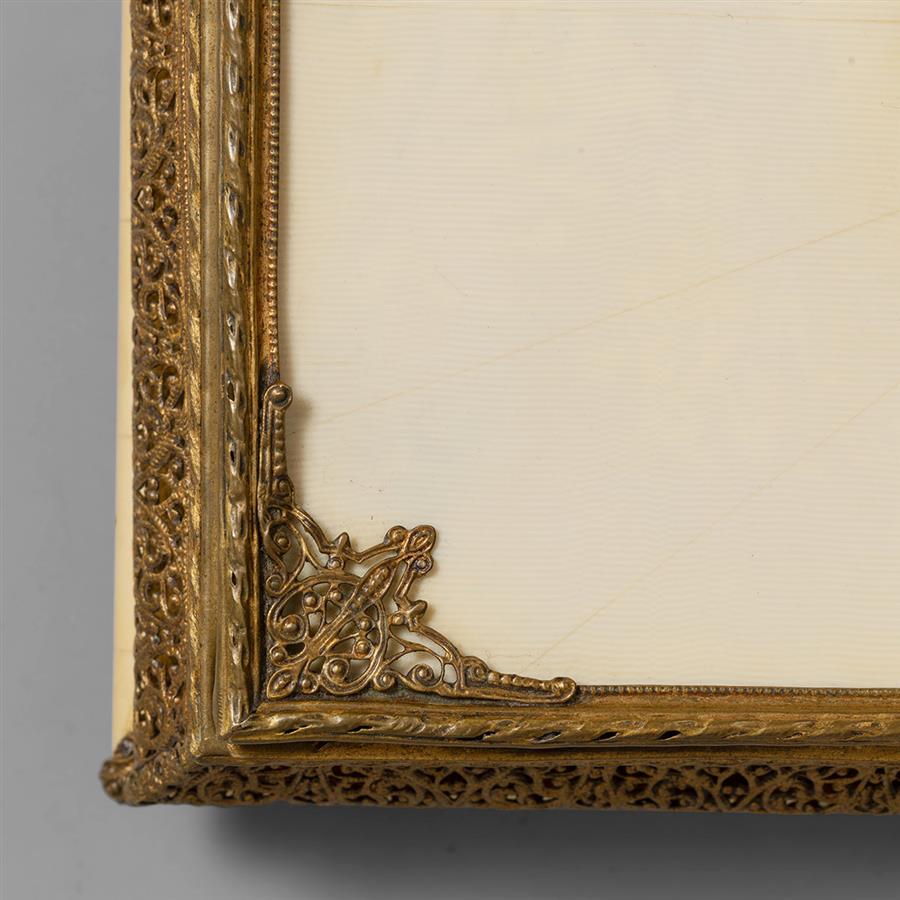 A Victorian Bone and Miniature Portrait Inset Gilt Bronze Dresser Box