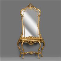 A Louis XV Style Gilt and Carved Wood Console Table with Pier Mirror